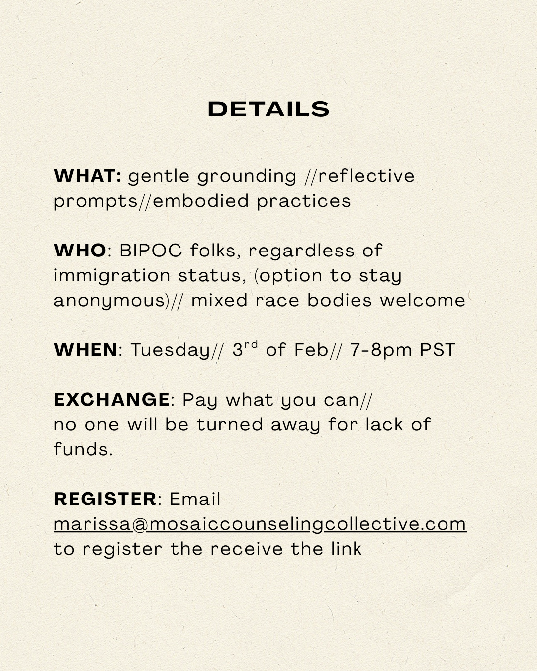 Space held by Marissa Merrill, LMHC and Melanie Ukosakul, LMHC
